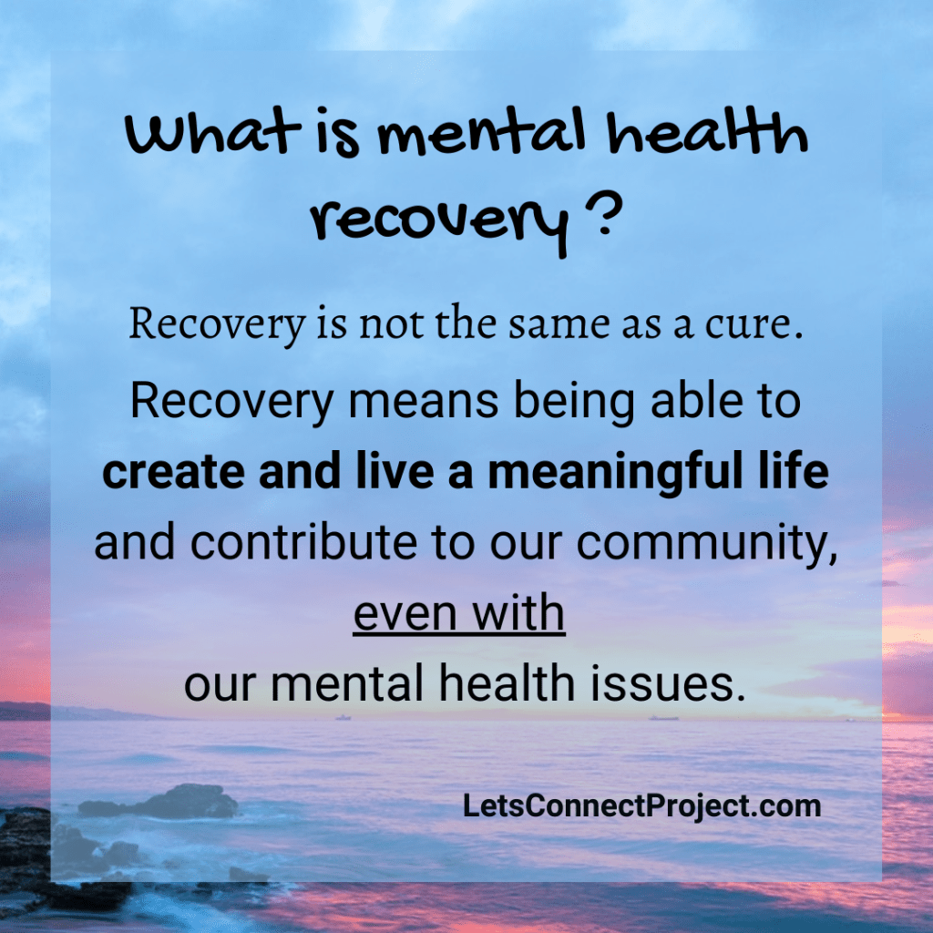 Recovery means being able to create and live a meaningful life and contribute to our community, even with (having) our mental health issues.